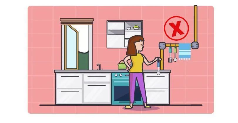 灶具周圍及燃氣管道上方嚴禁懸掛各類雜物,降低因管道變形引發(fā)火災風險,確保用氣安全。